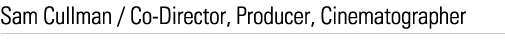 Cullman's camera credits have included Eugene Jarecki's WHY WE FIGHT (2005),