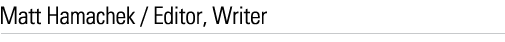 Matthew Hamachek's work has aired on HBO, IFC, PBS, BBC and the Discovery